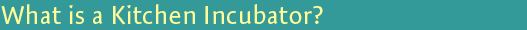 Incubators make it financially possible for a startup food manufacturer to take advantage of available professional kitchen space, tools, and knowledge from birth to independence. The incubator becomes the site for "proof of concept" for the many creative culinary inventions concocted by these passionate foodies.